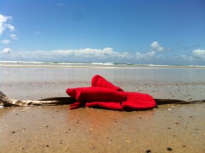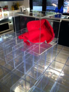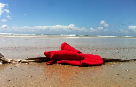 All the stuffed bettas were auctioned off and one particular betta was destined to be Larissa Williams new pet. Larissa purchased this new Red Betta Stuffy and promptly started to post impromptu pictures from her journey home. Many IBC members took to this idea and welcomed updates on her new addition.